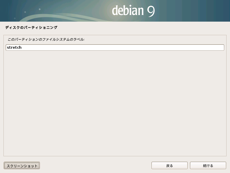 | /dev/sda2 | 20GB | 39% | ext4 | stretch | squeeze:/ | 随時マウント | stretch:/←ここに入れた |
