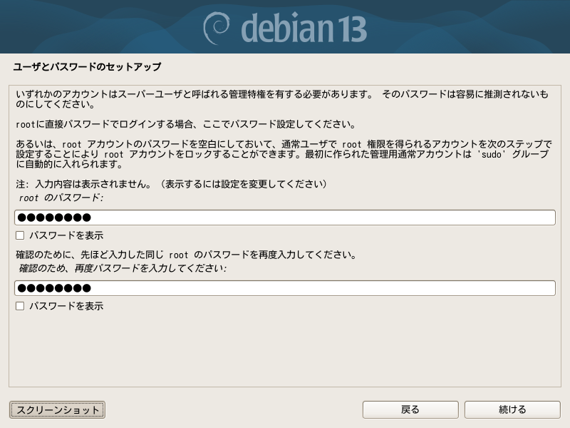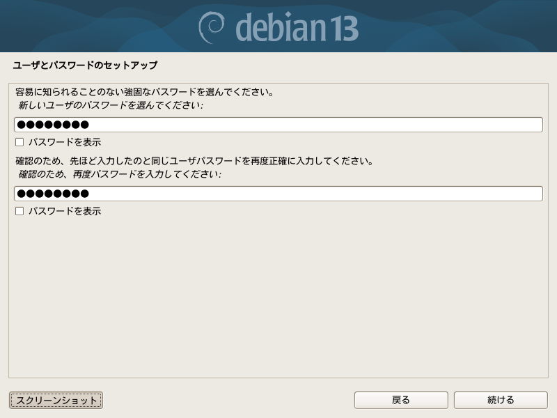 Debian12では、パスワードを定期的に変更すべしと書いてありましたが、13ではこの記述がなくなりました。最近は頻繁に変更させると覚えられないので、どこかにメモしたりして漏れやすいと言われています。