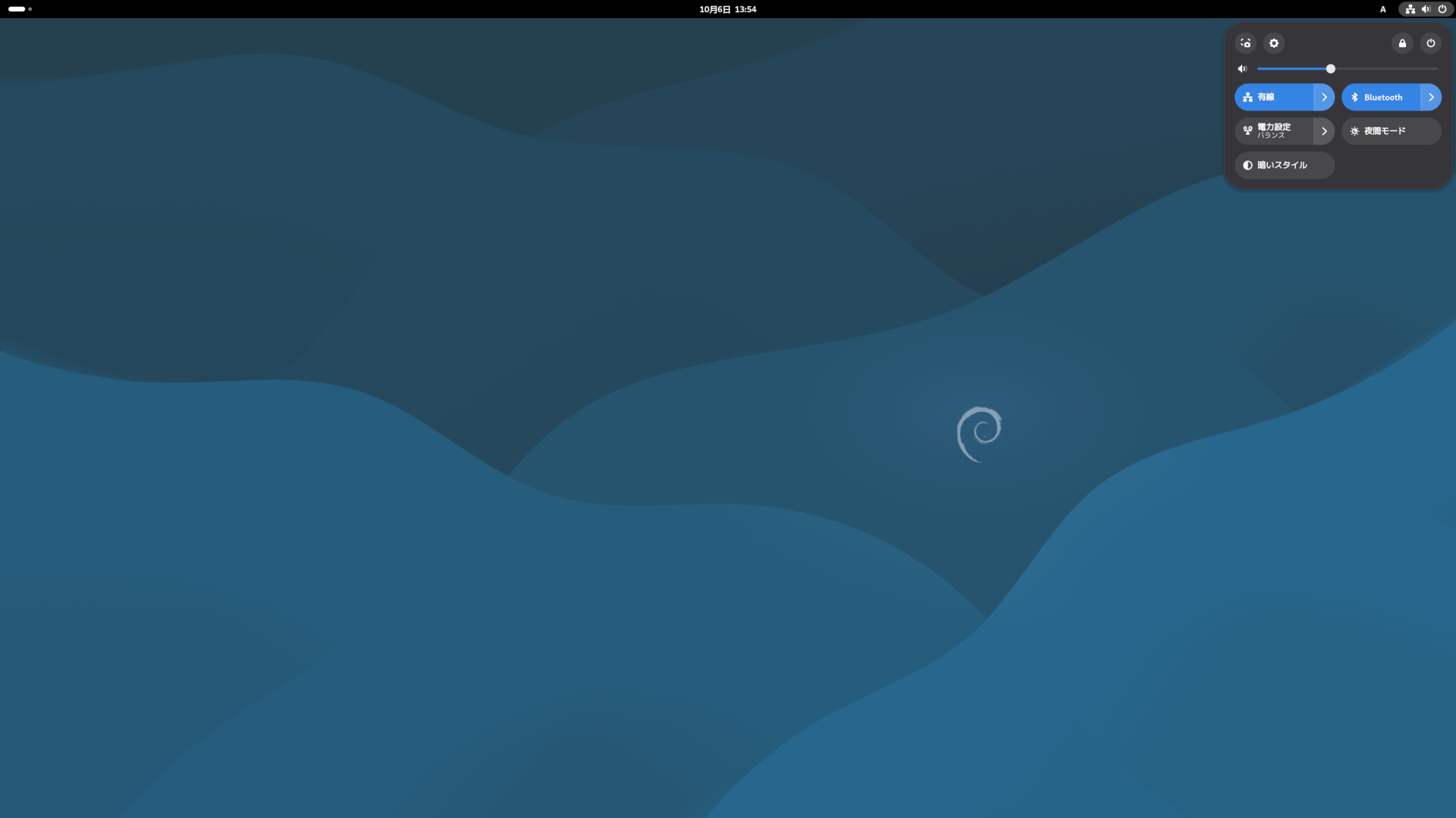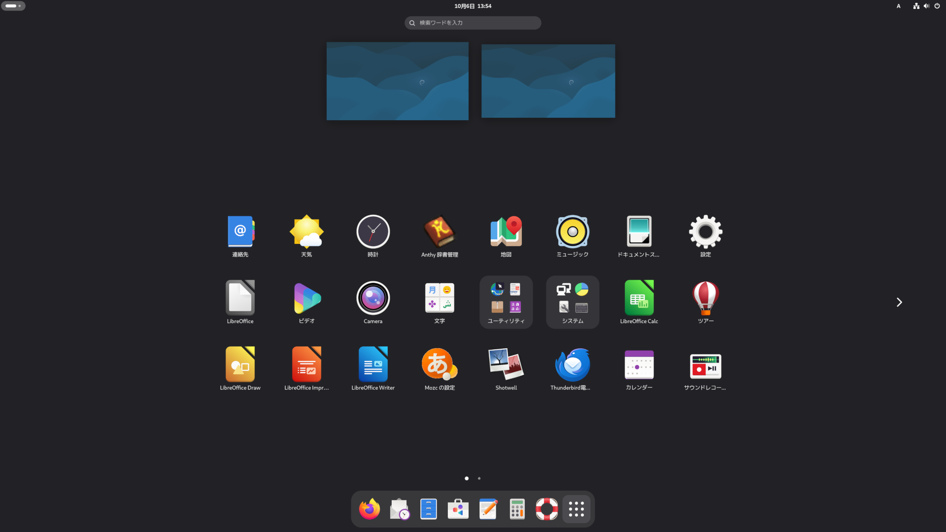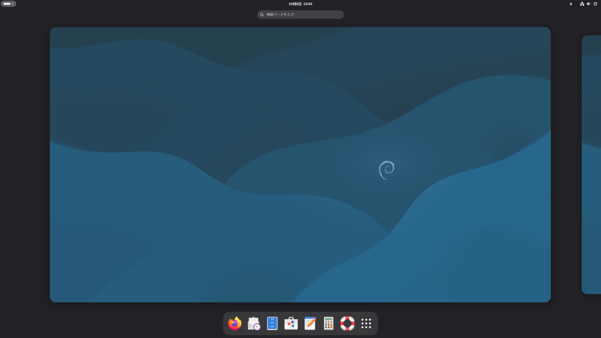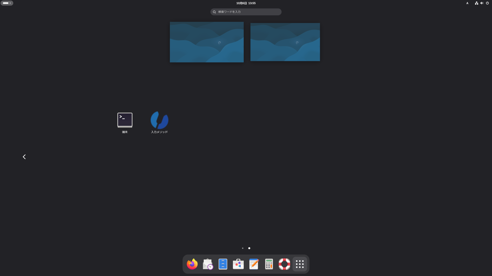 Debian12と同じで、ログイン直後にアクティビティ画面になります。