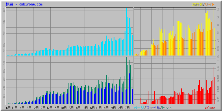 | ヒット | ファイル | ページ | 訪問者 | サイト | Volume | 訪問者 | ページ | ファイル | ヒット | |